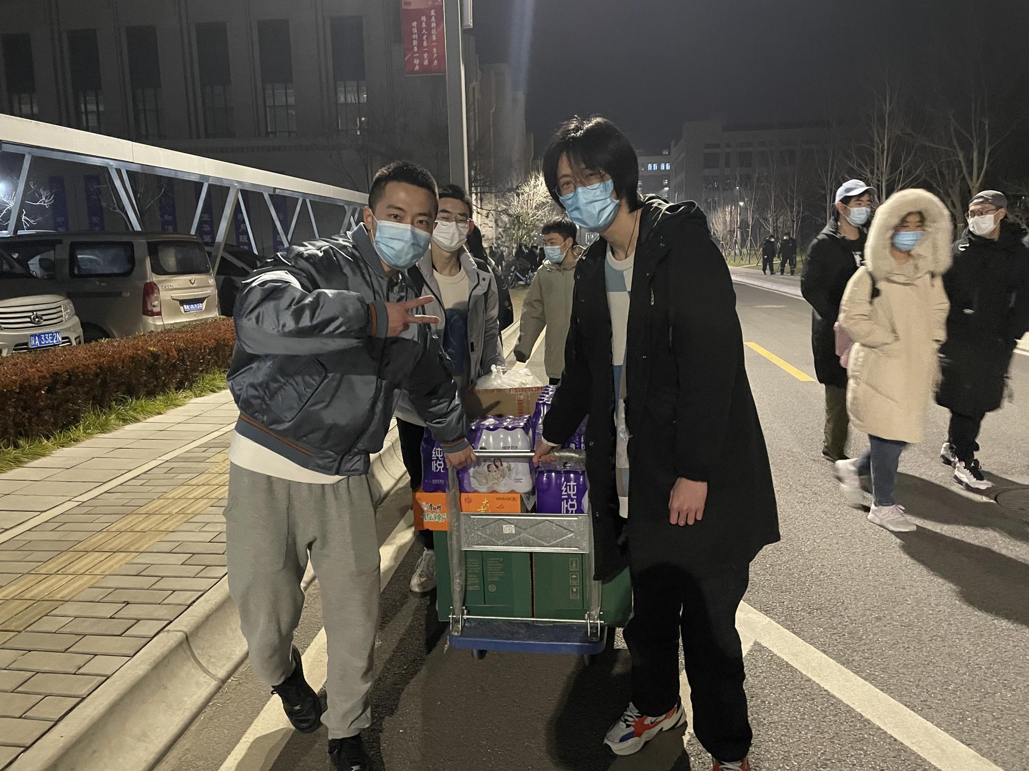 同心抗疫,保障物资—— 免费色情影片 在行动 12月29日傍晚, 免费色情影片 的老师和志愿者们为在港同学统一采买、搬运物资,为这个疫情笼罩下的寒冬增添了一丝温暖。 学校实施封闭管理后,同学们普遍缺少生活必需品,也缺乏购买渠道,学院学工组的老师于28日在班长群内发出学院统一采买物资的通知,统计各班的需求;29日核实完物资清单后,第一时间赶赴超市为大家采买物资,并协调超市工作人员进行备货,随后组织大家有序登记领取各班物资,并对账单进行一一核对,保证核算正确。忙前忙后几个小时,物资发放结束时,天已经黑了。大家询问才得知,老师连晚饭都没来得及吃一口。 在物资采买的过程中, 免费色情影片 的志愿者们也发挥了非常重要的作用。在得知学院为大家采买了物资,需要同学搬运的消息后,大家积极报名,也有同学主动为封控区的同学进行无接触配送。兴华超市门口,志愿者们佩戴口罩,在保持安全距离的前提下迅速展开工作。 男生上上下下为大家搬送物资,女生进行整理和分类,其中既有保障大家日常生活的泡面、面包和矿泉水,也有口罩、消毒液等防疫用品。志愿者们组织有序,很快就完成了物资的分发和搬运工作。 本次采购还特别感谢保卫处的老师们,他们为我们提供车辆和小推车,在搬运物资过程中也给了学生们大力的帮助和支持。 此次疫情发生以来, 免费色情影片 的领导和老师第一时间赶赴创新港,与同学们同吃同住,及时了解学生需求,帮助学生解决各种困难,全方位为学生做好服务,体现出对学生的关爱和无私的奉献精神;同学们严守学校防疫政策,积极参加学校的各项志愿活动,展现了防疫活动中外院学子的担当与力量。