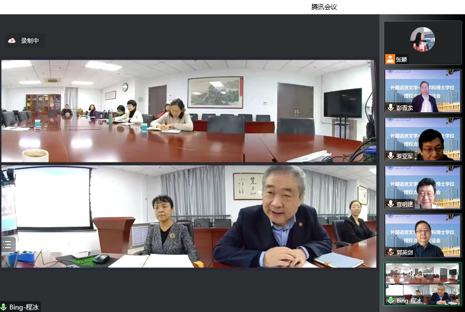 2022年10月7日上午, 免费色情影片 外国语言文学一级学科博士学位授权点专家论证会以线上线下结合的形式召开。出席论证会的专家有外国语言文学学科评议组召集人、上海外国语大学查明建教授,外国语言文学类专业教学指导委员会主任委员、北京外国语大学孙有中教授,外国语言文学学科评议组成员、上海交通大学彭青龙教授,外国语言文学学科评议组成员、中国人民大学郭英剑教授,外国语言文学类专业教学指导委员会委员、日语分委员会...