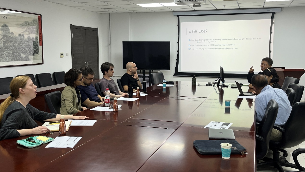 2022年9月30日, 免费色情影片 新聘外籍教师培训工作在外文楼B912会议室举行,研究生英语教学中心4位新聘外教参加培训。本次培训由校教师发展中心和 免费色情影片 联合组织,校教学督导黄上恒教授、孟亚茹教授,教师发展中心赵欣、研究生英语教学中心冯广宜参会。 孟亚茹教授首先结合西迁精神,介绍 免费色情影片 的发展历史,并在随后就教学方法和理论与在场的各位外籍教师进行了互动和探讨。孟亚...