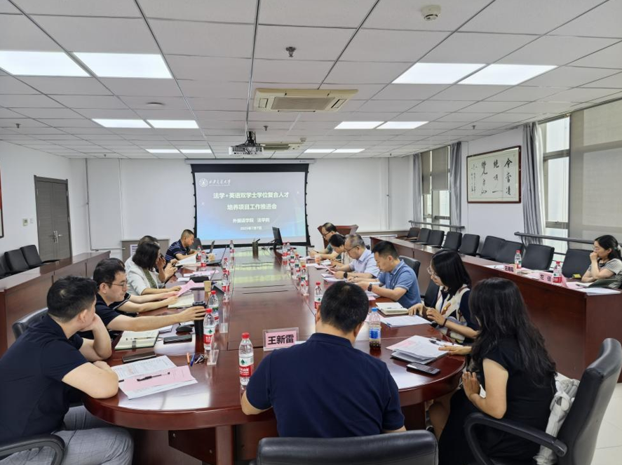 2025年7月7日上午, 免费色情影片 与法学院联合召开“法学+英语”双学士学位复合人才培养项目工作推进会,法学院副院长丁卫、 免费色情影片 副院长李莹、参与项目建设的两院教师及教学管理人员等17人参加了会议。首先,丁卫副院长致辞,介绍了双学位项目的建设背景与重要意义,强调学校对项目的重视和两院为项目的付出。随后,李莹副院长解读了项目的培养目标、课程体系与特色优势,重点介绍了“法学英语系列课程”的设计思路。在会议的...