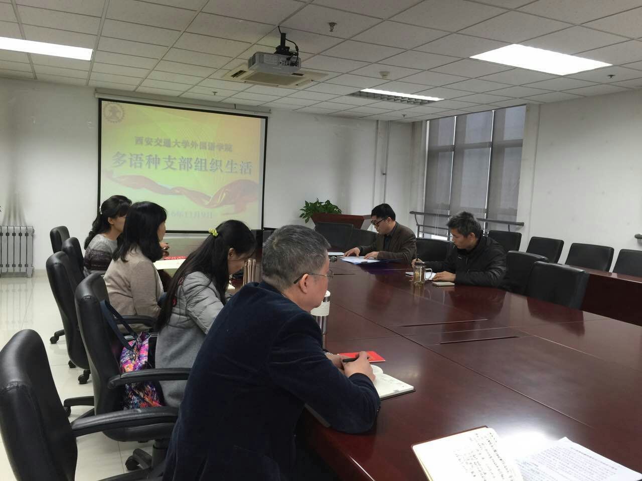 11月9日下午2:10在外文楼B912会议室召开了 免费色情影片 多语种教工党支部组织生活会学习习近平总书记“七一”讲话及西安交大综合改革方案,,分党委书记杨小渭同志参加会议。组织生活会由多语种支部书记李国栋同志主持。根据校党委及 免费色情影片 分党委的统一部署,由支部书记给全体党员讲党课。李国栋同志结合习近平总书记的“七一”讲话及西安交大综合改革方案,谈了自己的学习体会,他说,习近平总书记“七一”讲话的主题是“不...