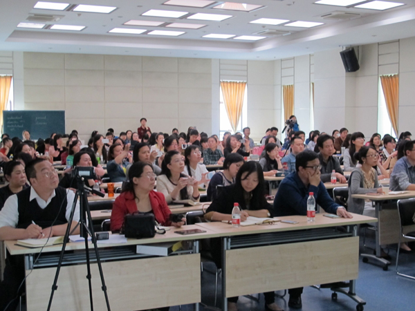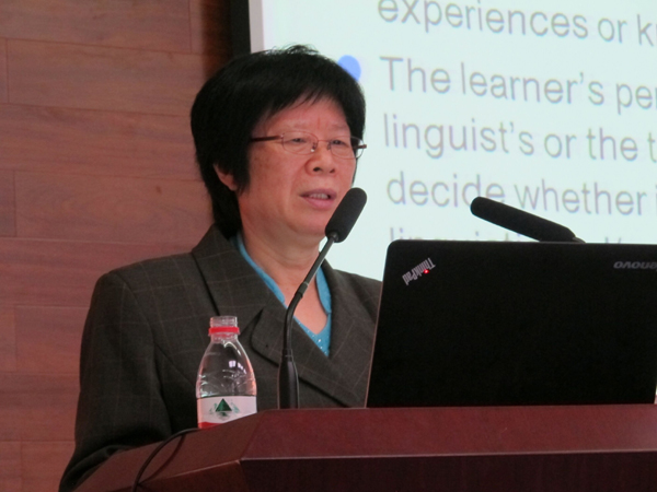 文秋芳教授围绕外语教学轴支撑比较假设的动机及未来研究方向展开。报告回顾了经典的对比分析及错误分析等二语习得理论,结合具体实验案例和心理语言学经典模型,深入透彻地分析了不同语言对人的认知思维方式产生的影响。文秋芳教授还就正在进行的相关研究与参会者进行现场互动,引起了在场听众极大兴趣,听众们积极参与、热烈响应,现场气氛十分活跃。