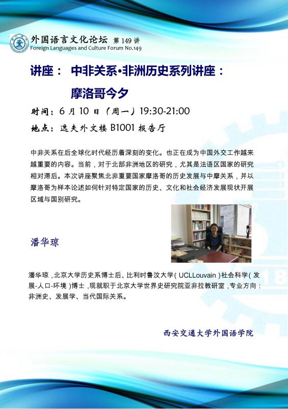 外国语言文化论坛(第149讲)—中非关系•非洲历史系列讲座:摩洛哥今夕