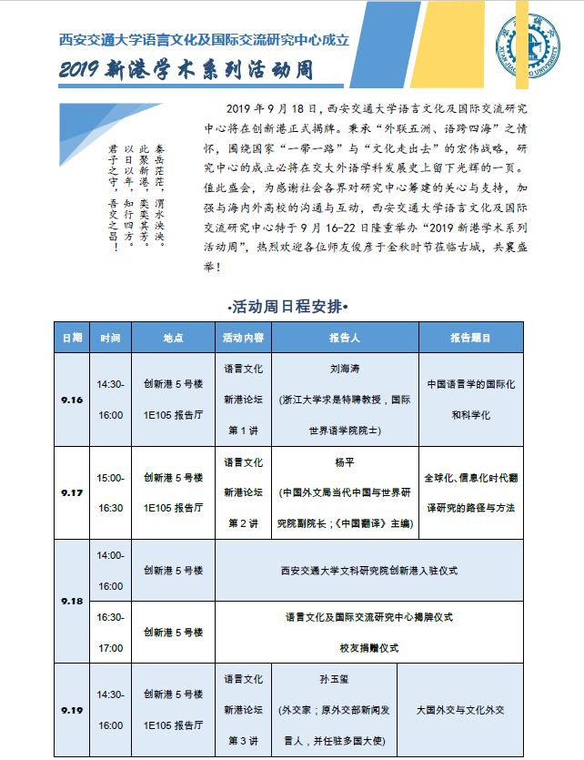 2019新港学术系列活动周