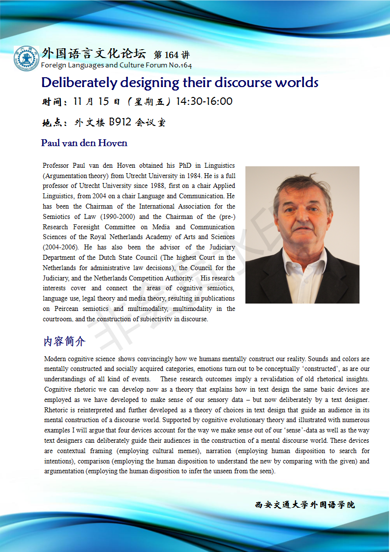 外国语言文化论坛(第164讲)—Deliberately designing their discourse worlds