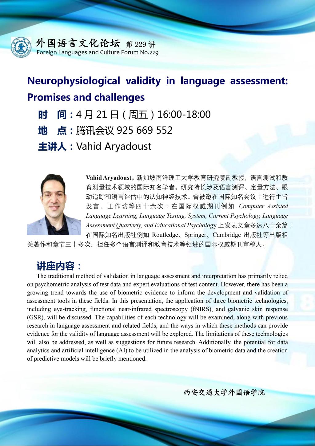 主讲人 Vahid Aryadoust