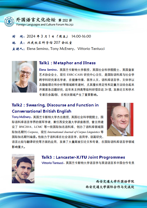 主讲人 Elena Semino, Tony McEnery, Vittorio Tantucci