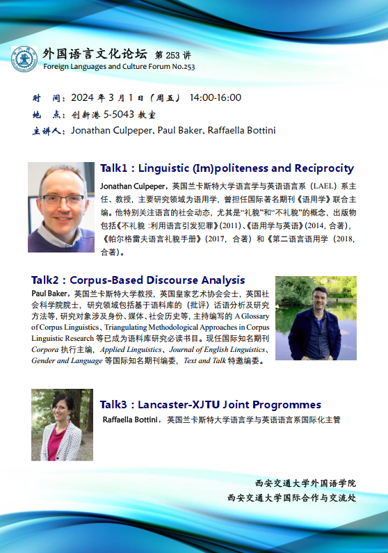 主讲人 Jonathan Culpeper, Paul Baker, Raffaella Bottini