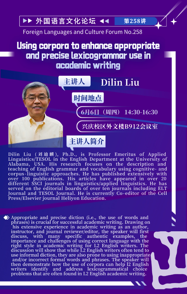 时间 6月6日(周四)14:30-16:30 地点 兴庆校区外文楼B912会议室