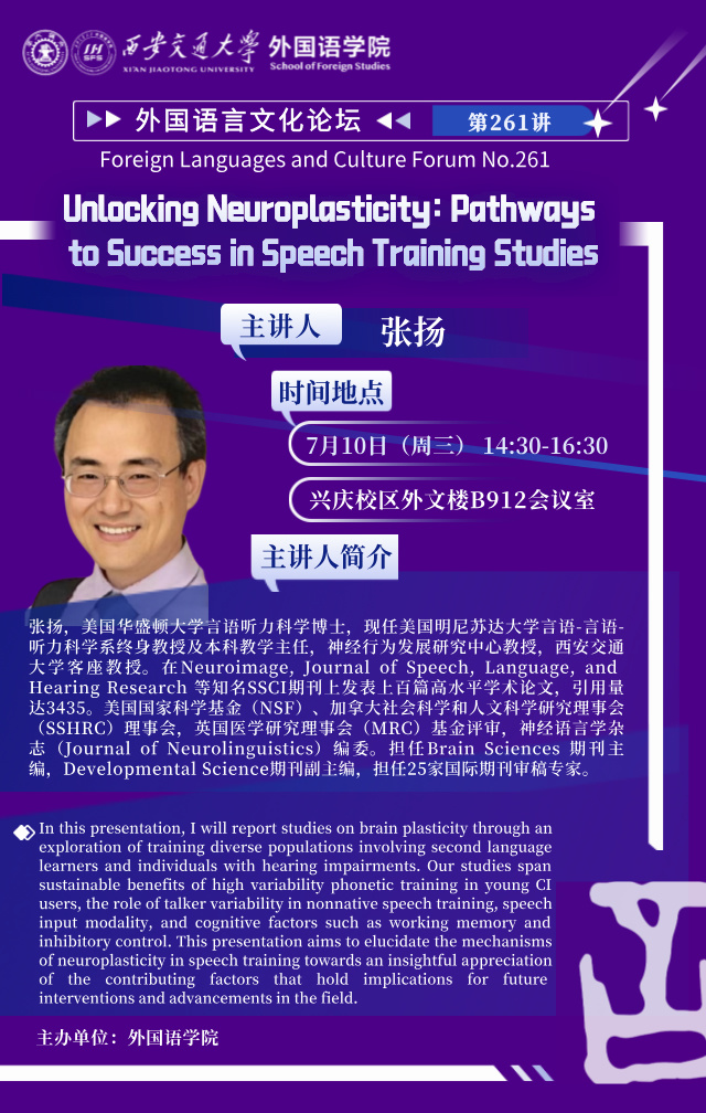 时间 7月10日(周三)14:30-16:30 地点 兴庆校区外文楼B912会议室