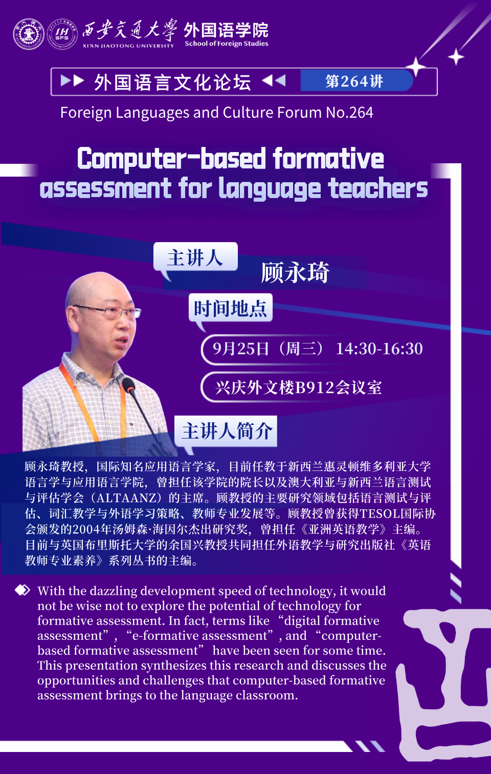 时间 9月25日(周三)14:30-16:30 地点 兴庆外文楼B912会议室