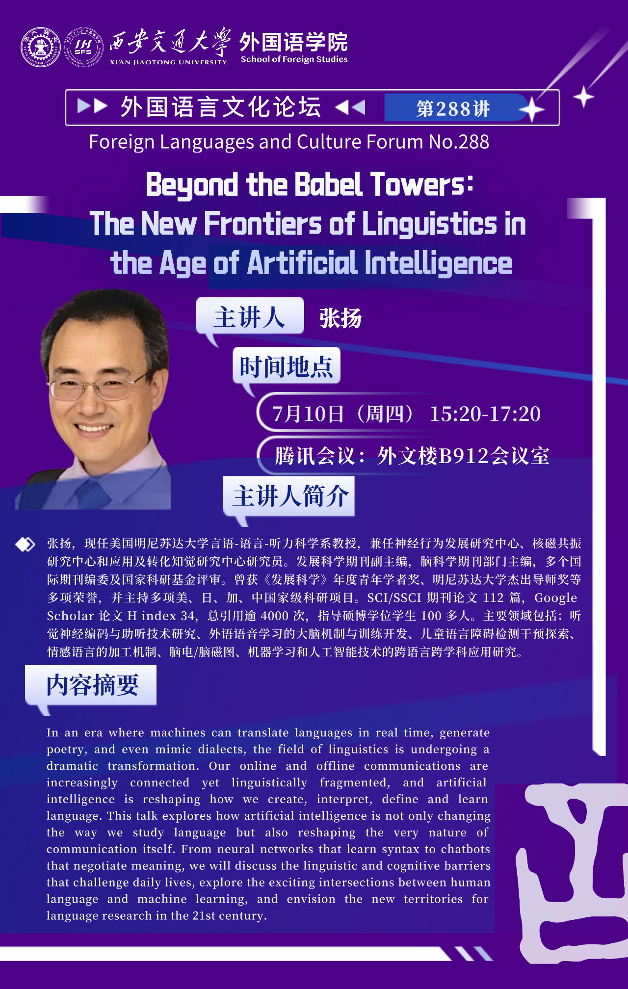 时间 7月10日(周四)15:20-17:20 地点 外文楼B912会议室