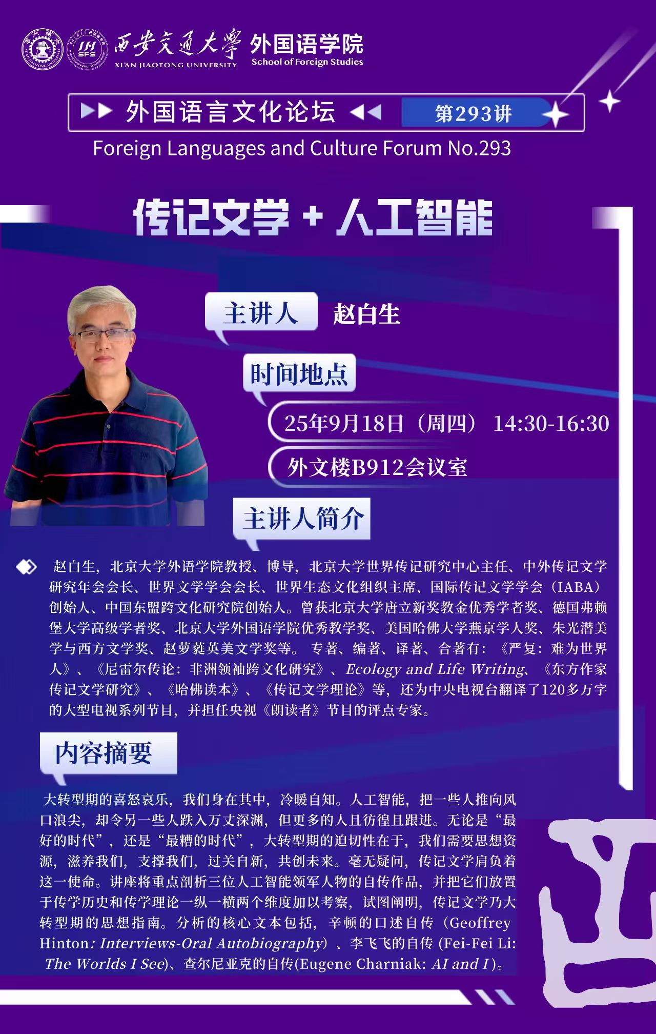 时间 25年9月18日(周四)14:30-16:30 地点 外文楼B912会议室