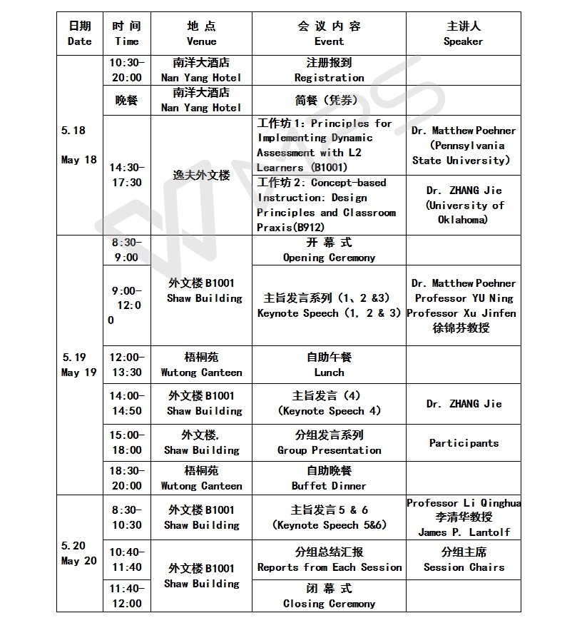 本次会议特聘请动态评估专家美国宾州州立大学Dr. Matthew Poehner和俄克拉荷马大学Dr. Jie Zhang做两场工作坊。