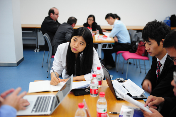 2013级和2014级10名MTI翻译硕士在陕西工商管理硕士学院学术交流中心参加第15届EMBA对外商务谈判活动,承担口译任务。