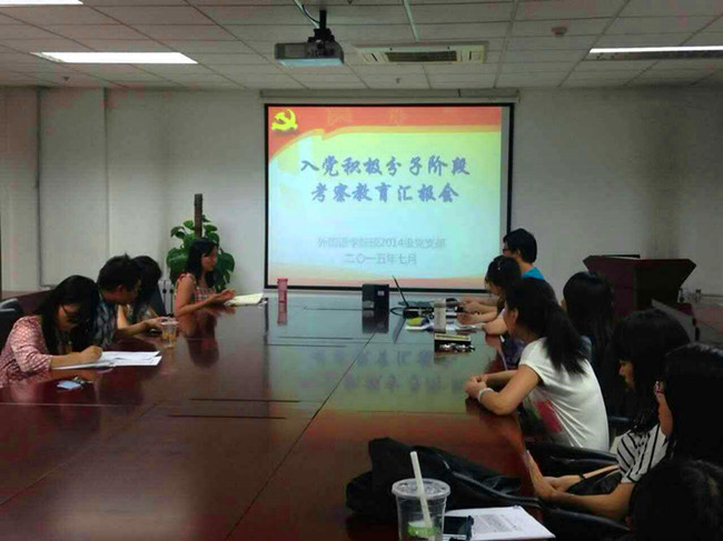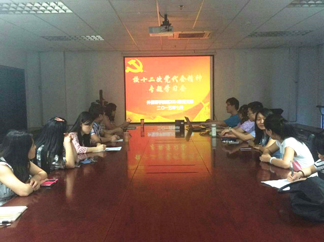 硕2014级党支部在逸夫外文楼B912会议室举行贯彻党代会精神学习会。硕2014级党支部学生党员、积极分子参会学习。学院团工委书记、辅导员马薇老师应邀出席。支部书记陆天舒主持学习会。