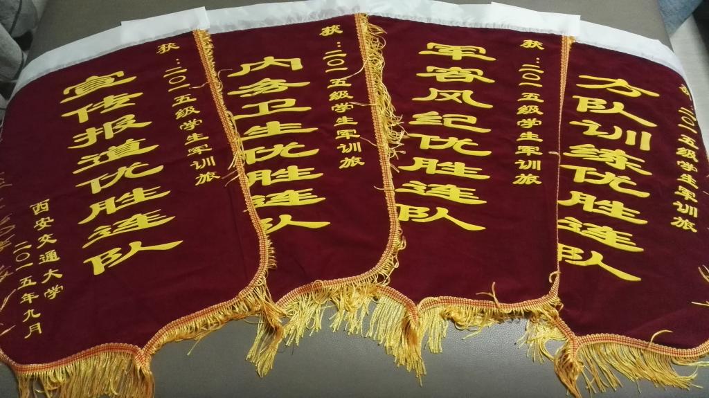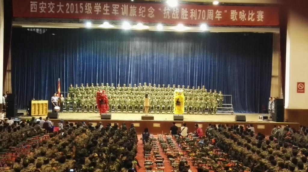 军训生活作为同学们的“开学第一课”,内容丰富,过程充实,有紧张严肃的任务训练(包括军事理论,条令教育,队列训练,防身术,匕首操等),丰富多彩的文体活动(纪念抗战胜利七十周年的演讲比赛、歌咏比赛,文艺汇演),帮助学员知行合一的防火、医护演练,庄严大气的国家胜利日阅兵式观看活动,意义深远开阔视野的“将军报告会”,每一次集体活动都让同学们受益匪浅,乐在其中。在空军工程大学航空学院教官的不懈付出和指导员老师的温暖关爱下,二连全体144名同学刻苦训练,积极乐观,团结一致,取得了四项集体荣誉,是三十个连中名列前茅的:宣传报道优胜连队,方队训练优胜连队,内务卫生优胜连队,军容风纪优胜连队。这是同学们用心血和汗水共同铸就的荣光,也是每个个体超越自我,突破极限的奋斗结晶。