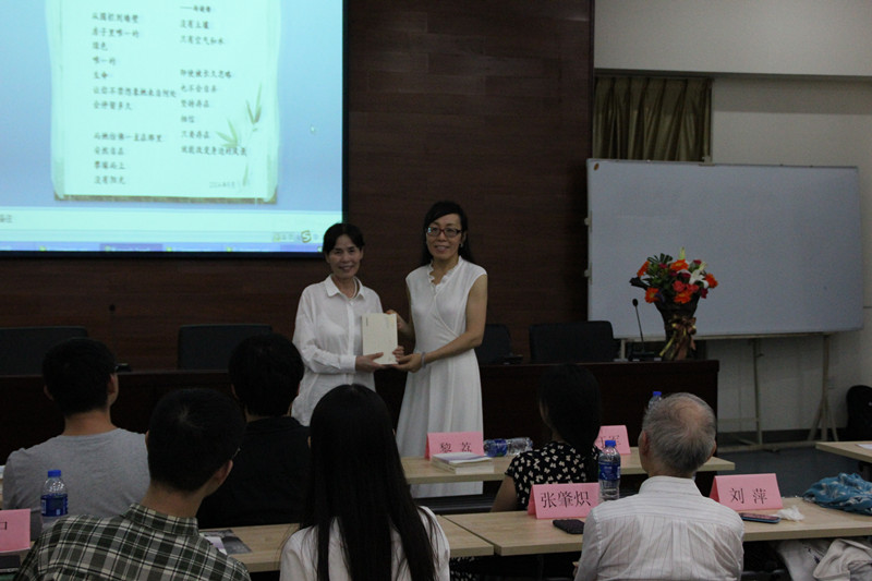 在教师节之际回母校举办诗歌研讨会,杨于军老师为母校和曾经指导她的沈奇老师分别送上了鲜花,感谢母校的培养和老师的付出。