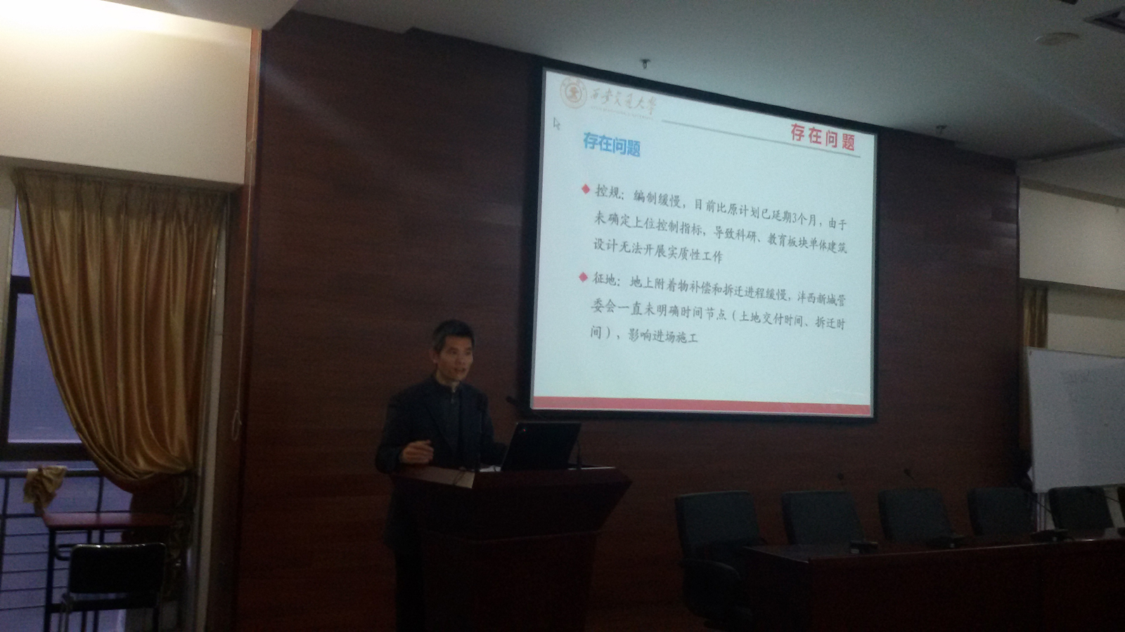 在外文楼报告厅召开全院教职工大会,传达学校11月3日党委中心组学习会议精神,通报学院学科建设情况和中国西部科技创新港建设进展情况。
