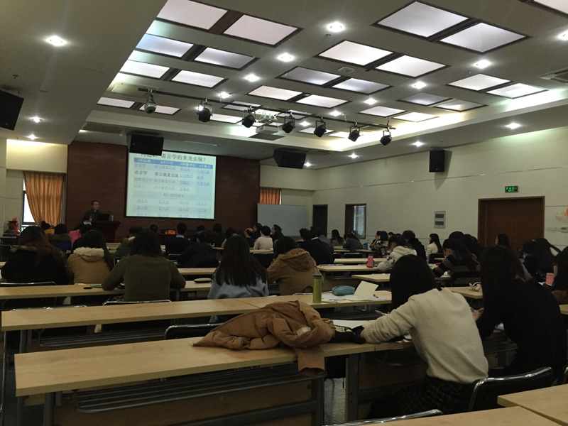 众多教师及研究生同学前来参加,现场气氛热烈。讲座由MTI教育中心兼外国语言研究中心主任聂文信副教授主持。