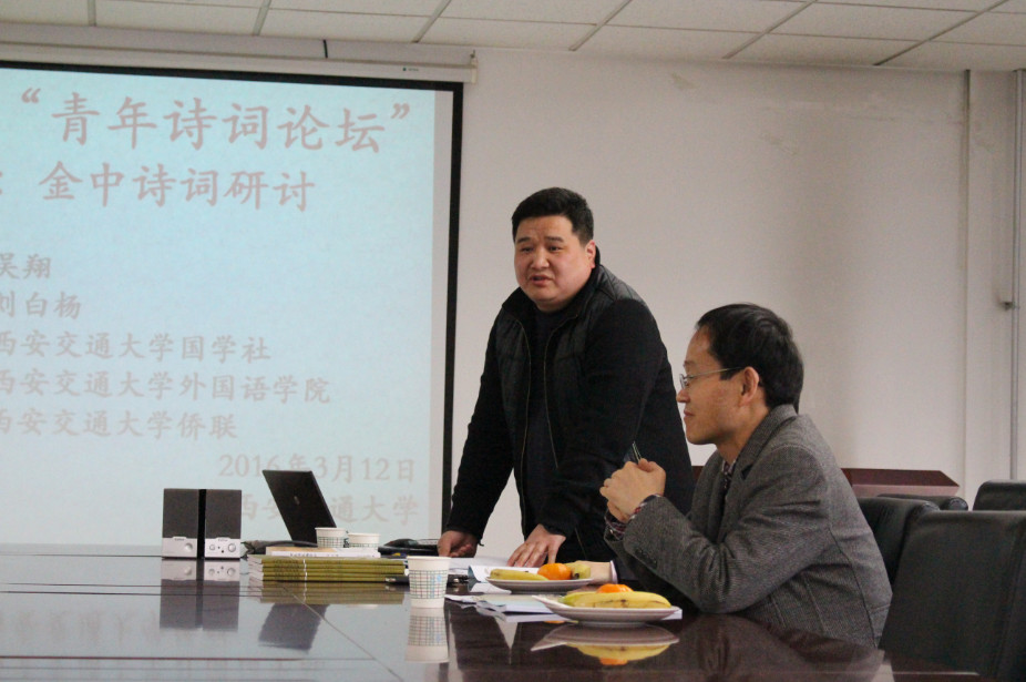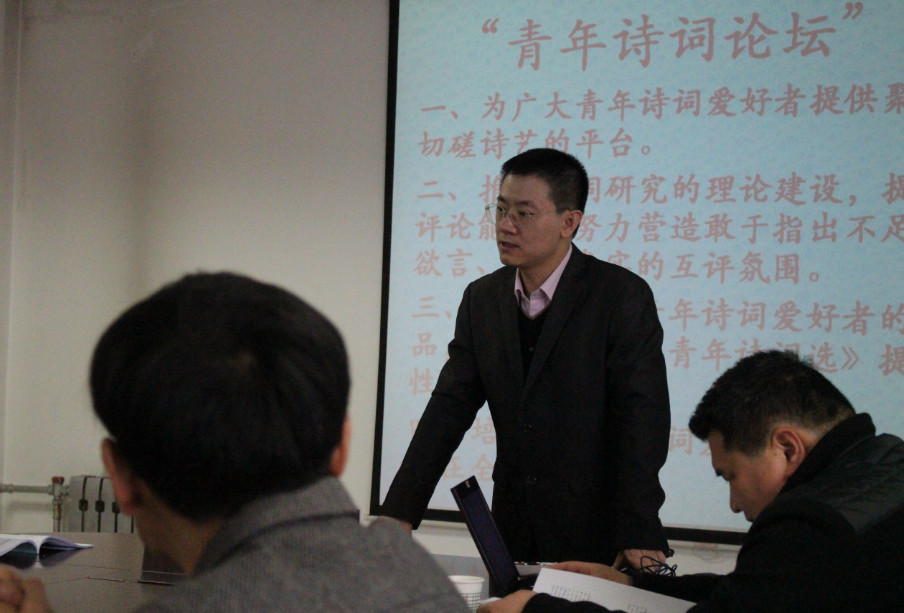 论坛从当日下午两点半正式开始。在主持人刘白杨致辞之后,金中介绍了论坛的举办宗旨并朗诵了其在今年2月创作的6首诗词新作。“青年诗词论坛”由刘白杨、金中、吴翔等人提倡发起,旨在为广大青年诗词爱好者提供聚会交流、切磋诗艺的平台;推动诗词研究的理论建设,提升诗词评论能力;努力营造敢于指出不足、畅所欲言、求真务实的互评氛围;甄选并打磨青年诗词爱好者的代表作品,为编纂《陕西青年诗词选》提供基础性资料;同时培养新一代诗词爱好者,提升陕西诗词在全国的地位。