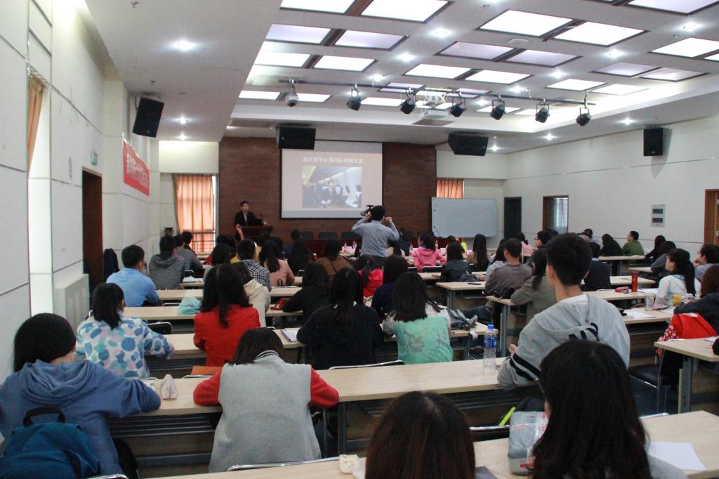 而后,魏建华学长还与师生们畅谈了他在出访活动报道中的见闻感受以及国家通讯社记者应担负的社会责任等。在一次应邀到以色列国际教授家中做客时,魏建华学长发现中国的外宣事业仍然任重而道远。他表示,中国是世界第二大经济体,但在世界之林中我们的国际话语权并不与中国实际的地位相匹配。魏建华学长提出记者和相关传媒工作者还有很长的路要走。也由此,他希望外语专业学生应“了解英语,了解西方社会,了解西方人的思维方式”,用他们的方式讲我们的东西,从而能为中国的外宣事业贡献力量。