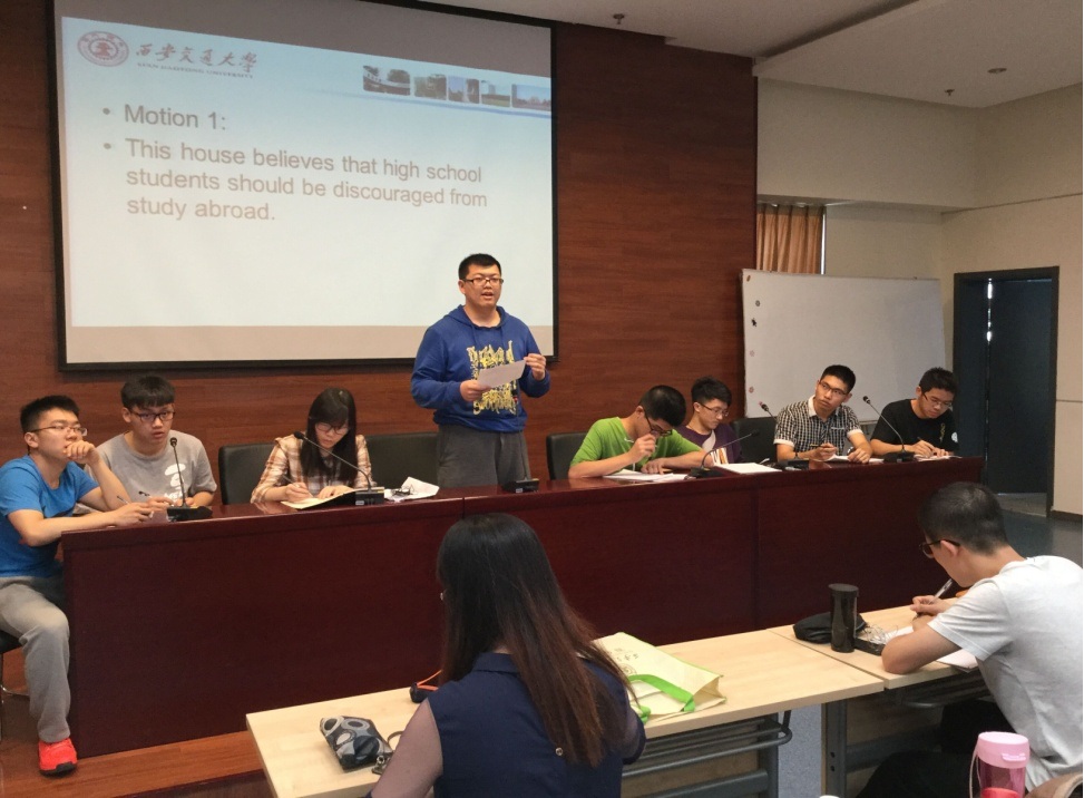 《英语辩论》课程开设于2015年,是一门对英语作为非母语学习者能力要求较高的课程,在国内高校针对非英语专业本科生开设并不多见。开课之初授课仅采取了小范围试点的形式在电气学院电气硕专业开展。该课程的课程特征是集中优势教师资源,采取专题讲座+联合授课的教育模式;针对理论知识选取适切性话题,进行适时性分班实践训练;采用形成性评估与终结性评估结合的全面客观评价机制。本学期是该课程第一次面对所有非英语专业大二学生开设,深受学生喜爱,从教学效果和学生学习成果来看对于同学们的语言水平、专业知识和思维能力都产生了极大的影响。今后课程组教师会继续加强课程建设,拟在将来引入科技新型教学模式,进一步提高教学质量,为更多同学培养批判性思维能力提供机会。