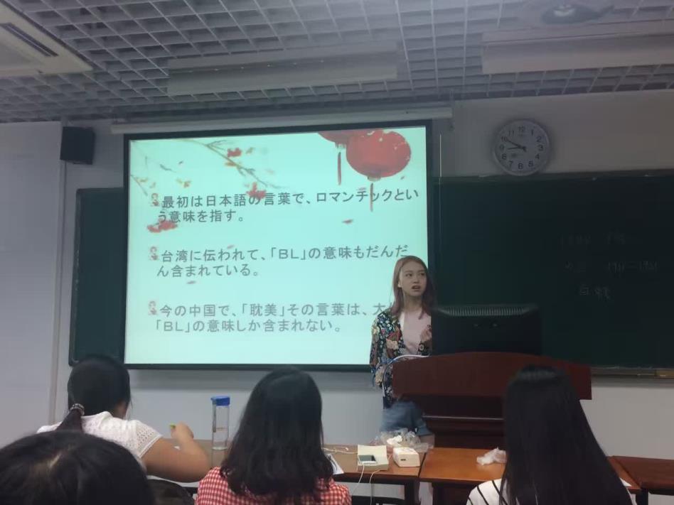同学们发表的内容丰富多彩,有关于耽美文化的介绍、中日韩三国时尚潮流的对比、中日英三国茶文化对比、日本影视圈发展、日本传统艺妓……