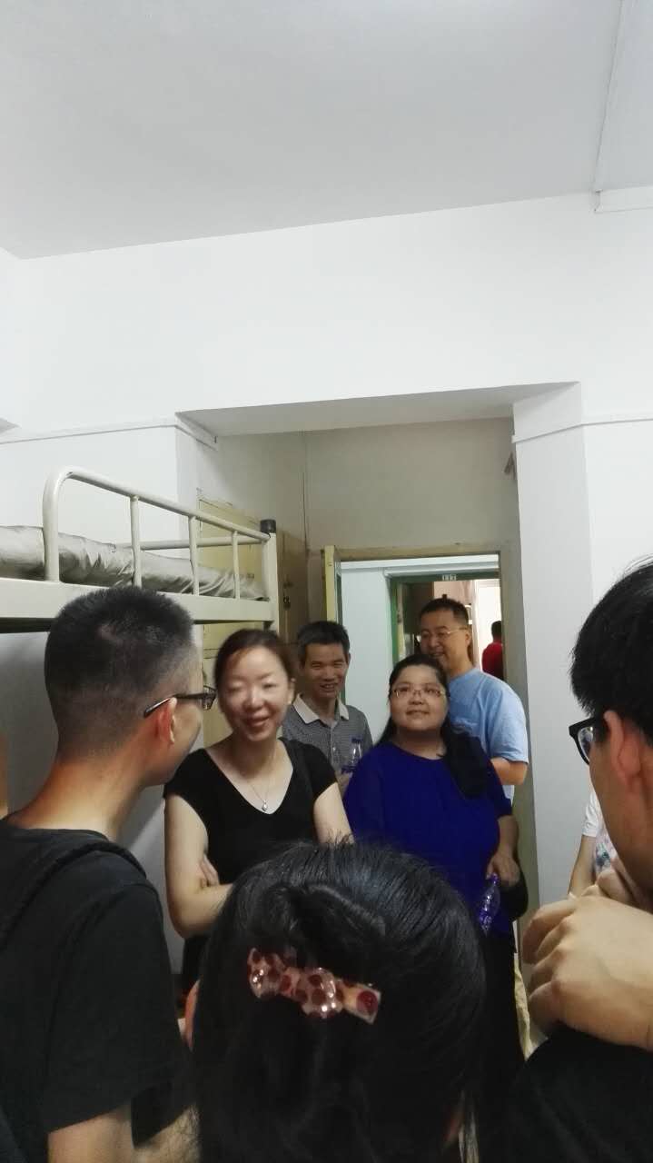 院长陈向京,分党委书记杨小渭,副院长程冰,学生工作专职委员许明,日语系副主任、班主任曹红荃,英语系教师刘丹翎、黄平安,法语系班主任王奕,研究生辅导员马薇在彭康书院院务副主任郭虎、辅导员代旺的陪同下冒着酷暑看望学院2016级本科新生。