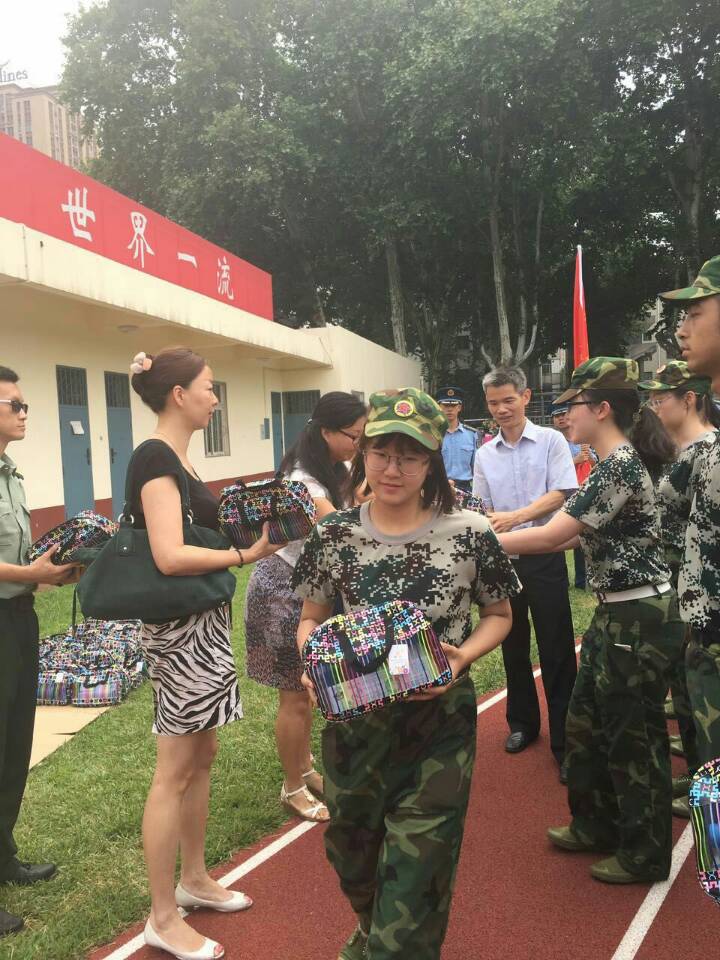 最后,学院领导老师为每一位同学送上军训慰问品。