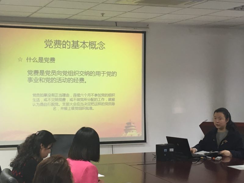 首先,教工机关党支部孙波玲老师带领大家学习了《中国共产党巡视工作条例》,详细介绍了巡视工作的机构和人员,点明了巡视工作的责任主体,讲解了巡视的范围和内容以及巡视的工作方式和工作程序。接下来,学生支部书记贺佳,讲解了我党党费的发展史,明确了党费的收缴方式、用途,增加了党员对党费的认同感。随后,大家围绕党员的标准结合自己生活上、学习上的现象展开了讨论。姚晔同学说,在今天参加学校问卷调查的过程中,我发现有很多同学不能客观、细致地反应问题,责任心不强,作为党员,我们要以身作则,以自身的行为感染身边的同学;刘备同学从宿舍卫生的角度出发,认为大家都应该珍惜和爱护他人的劳动成果,自觉维护校园卫生;张继飞同学认为,研究生一定要有诚信意识和高尚品行,不仅要努力进行科研,撰写论文,更要重视学术诚信,保持共产党员的先进性和纯洁性。