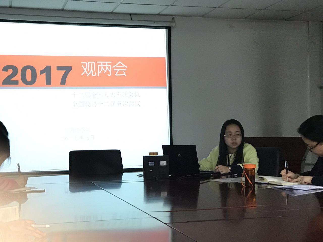 的一员,我们要发挥专业特长,讲好中国故事,为国家的对外交流贡献出一份力量;赵雅莹同学从博士生待遇提高中看到了国家对人才、对知识的尊重;甘桥同学表示,雾霾等环境问题是大家最关心的问题之一,我们从政府的工作报告中看到了国家对环境保护的决心,作为一名学生干部,我们要从小事做起,自觉保护环境;张舒婷同学从出国交流的经历展开,呼吁大家勤俭节约,支持国家品牌。