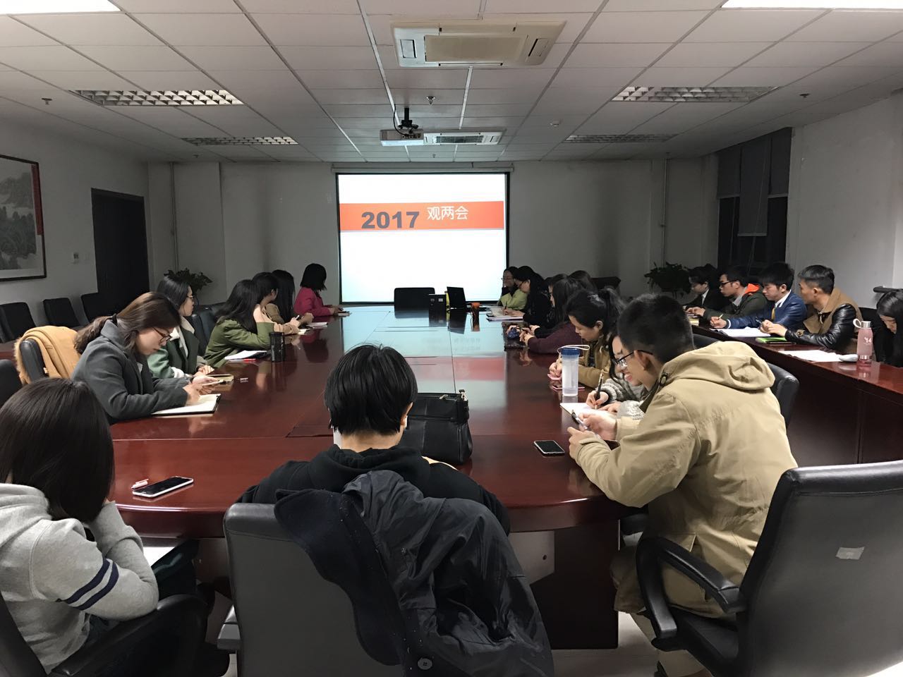 在外文楼B912会议室召开学生干部工作会议,深入学习《政府工作报告》,交流对《政府工作报告》的认识。会议由研究生辅导员马薇老师主持,学院学生工作专职委员许明老师及全体研究生学生干部出席了本次会议。