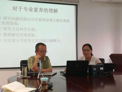 及外校的师生带来了一场新颖而精彩的学术对话:“智造学术与国际发表---Meta编委与作者的对话”。对话中,詹老师介绍了她正在完成中的一篇中文论文,钟教授通过精心设计的提问,启发詹老师关注并思考了解在国际英文期刊在论文内容,形式及语言等方面的常规,及如何改进自己的论文以顺应这些常规。新颖的对话式学术讲座形式收到了良好效果,现场气氛热烈,提问踊跃。