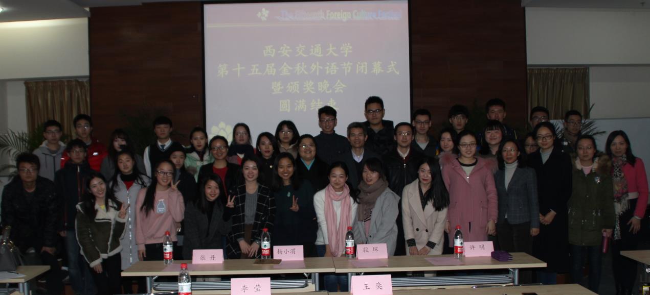 闭幕式的最后, 所有到会的老师和同学们进行了合影留念,晚会在一片欢声笑语中结束,同时也为历时两个月的第十五届金秋外语节画上了圆满的句号。值得一提的是,本次晚会中,无论是主持人的中英双语主持还是同学们的外语节目表演,都充分地展现了 免费色情影片