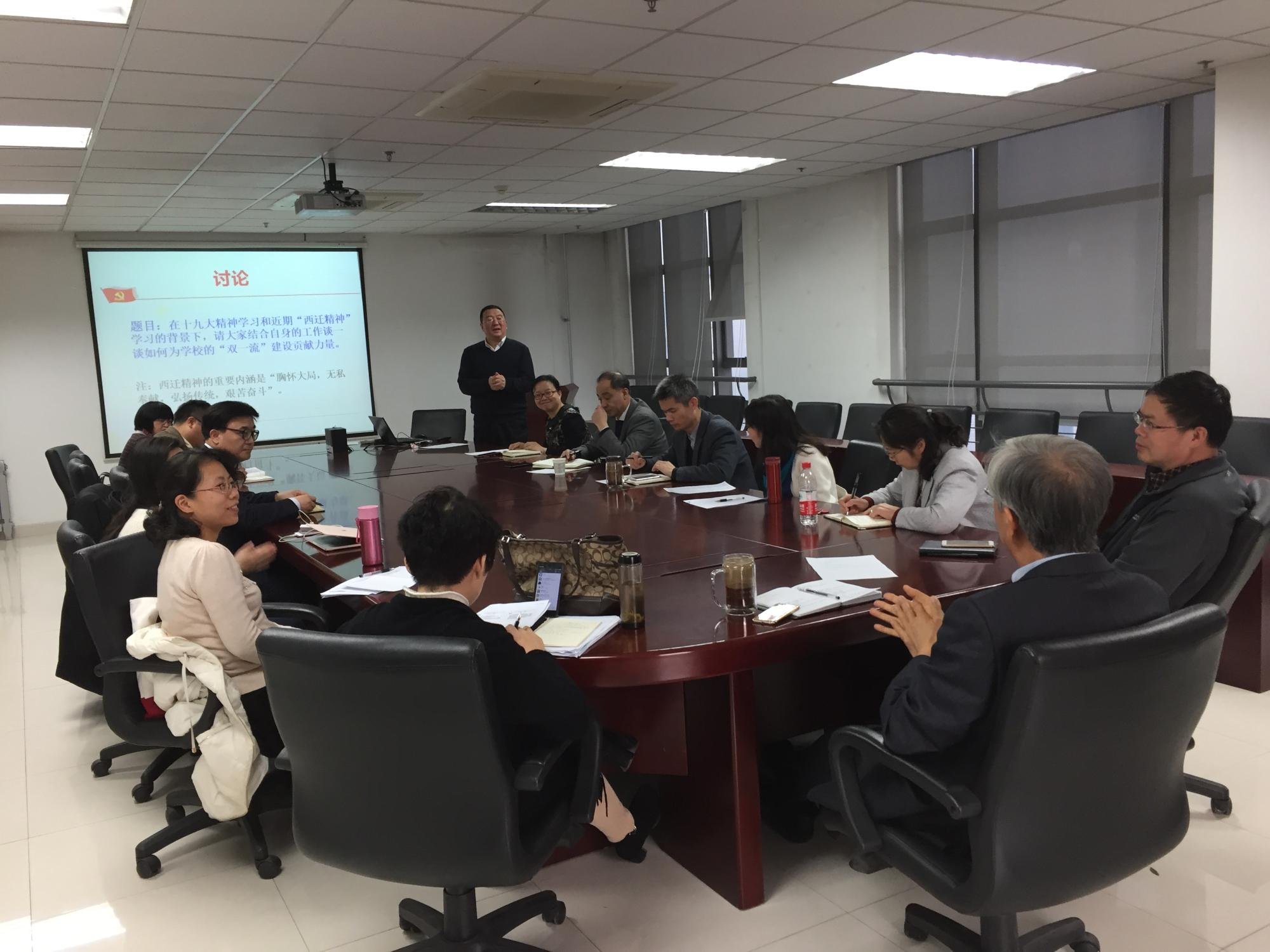 与会人员首先集体学习了十九大报告关于习近平新时代中国特色社会主义思想的“八个明确”以及“西迁精神”,随后结合自身工作,交流学习体会,畅谈如何为学校“双一流”建设贡献自己的力量。白永权教授谈到,现在我们国家日益强大,作为中国人我们感到非常自豪。学校新一届领导班子工作投入,拼劲十足,务实高效,在校内赢得极高的认可度。杨瑞英教授认为,教育是民族复兴的基础工程,目前我国的高等教育与发达国家的一流高校相比,还有一定的差距,但我们有信心,有决心追赶超越,实现“双一流”的目标。英语系主任杜丽霞通过介绍 免费色情影片