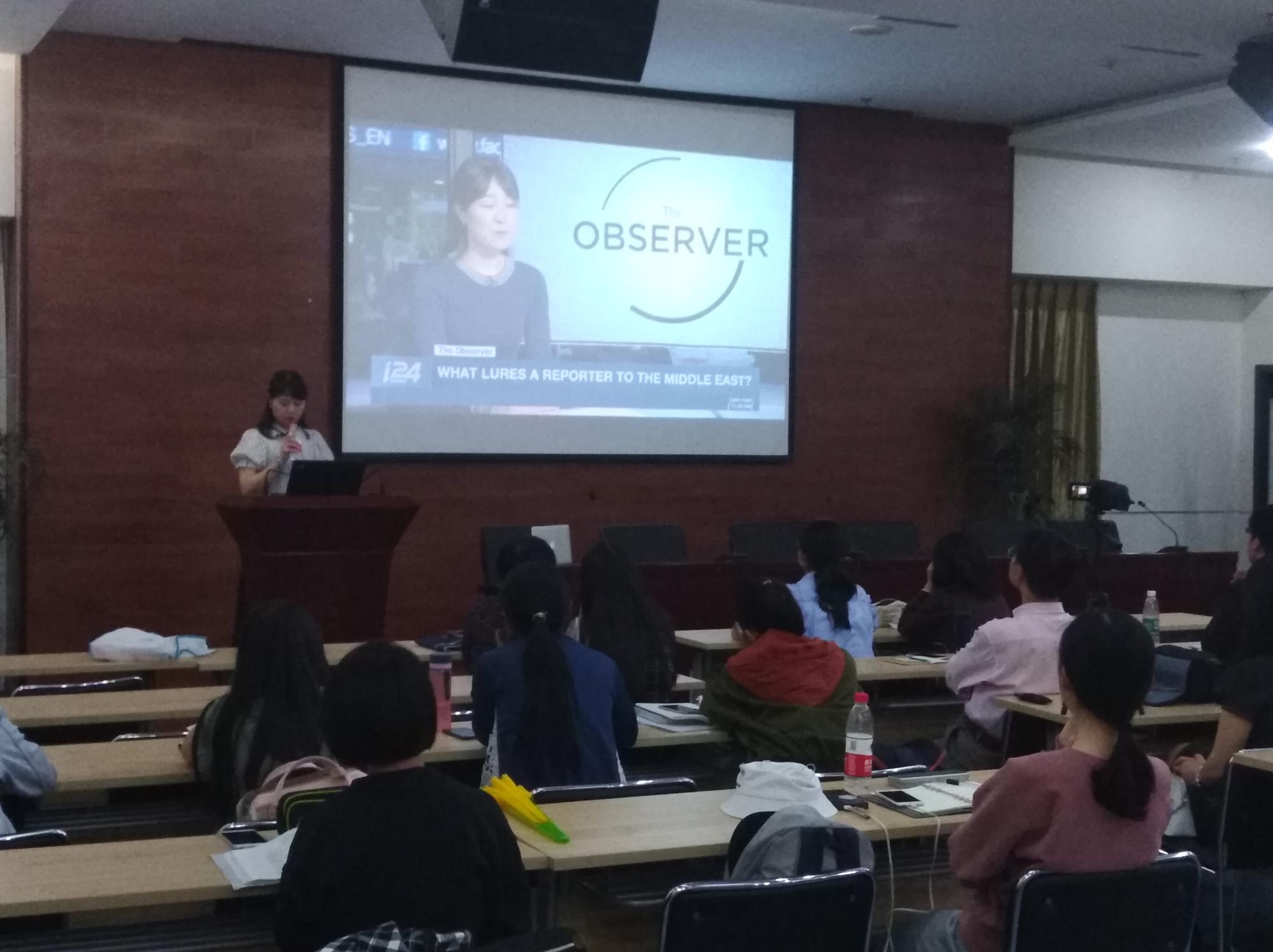同时她还分享了在自己在以色列作战地记者的经历。她认为国家政府的治理能力对国家发展十分重要。在巴勒斯坦,由于没有强大的政府,人民生活深陷困境。她在亲临加沙冲突的地带,深感中国和平环境来之不易。她看到无学可上的巴勒斯坦儿童,希望可以凭借一己之力,帮助到他们,改变他们的现状。她同时分享了新华社记者做新闻的理念,做真实的新闻,不捏造事实,不做虚假新闻。
