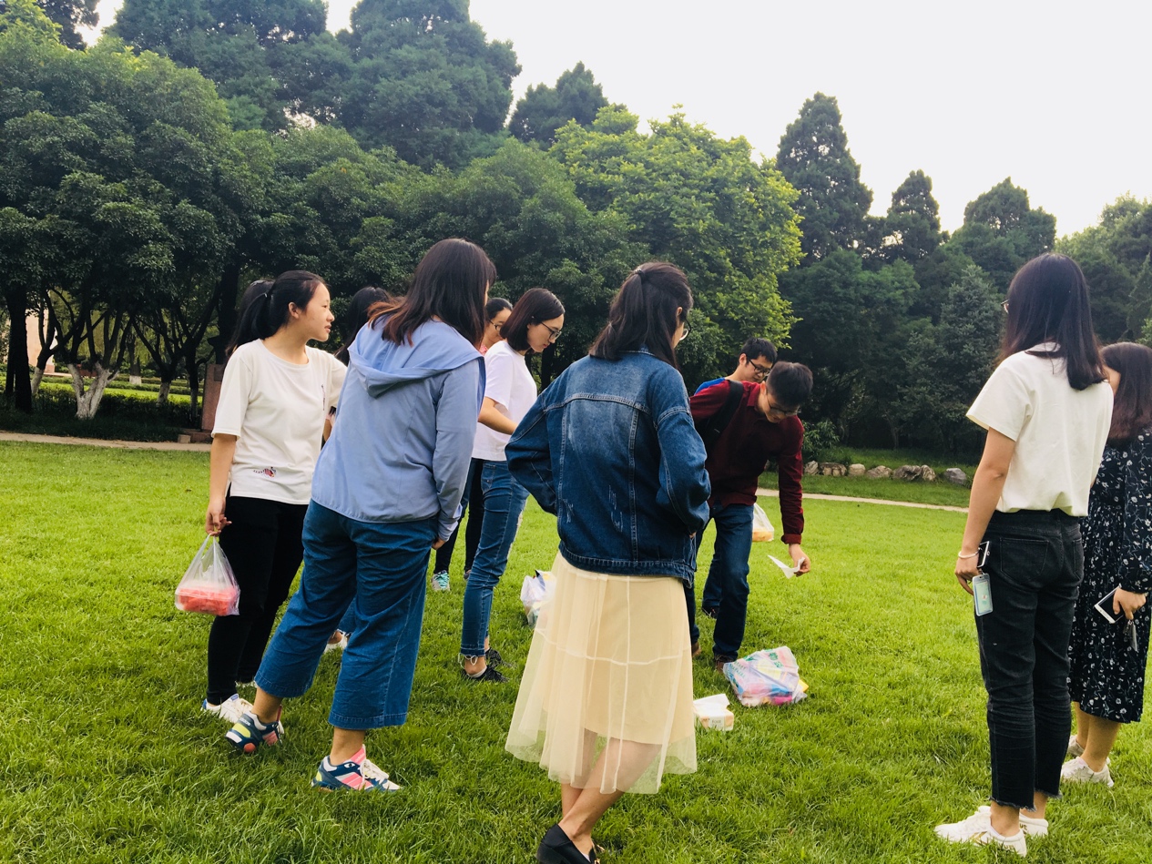 据调查,抑郁症学生占到了高校心理咨询中心来访量的两成,并且硕博士抑郁呈现升高趋势,故将此次活动的主题定为“共同面对抑郁,共促心理健康”。为保证活动的知识性与趣味性,经班委讨论后采用线上学习和线下交流相结合的方式。班长召集各位同学搜集抑郁症和心理健康方面的资料,并将资料上传至微信群,大家线上主动学习相关知识。为加深对心理健康知识的理解,同学们放下手机,走进学校东花园,交流和思考学习中遇到的疑惑和问题。