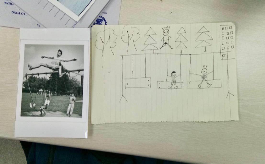 课堂中,除了英语的听说读写,老师尤其重视我们的动手能力。例如,那次Ms.Luth让我们分成两人一组,每组都发了一张照片,要求我们小组内一人手持照片,用英语描述照片上的内容,另一人在一直看不到原图的情况下,只根据队友口中的英文描述,尽可能用纸笔还原出照片的样子。这次的活动让我们挖掘出了每个人的创造力和想象力,每一幅完成的作品,都是一个惊喜。