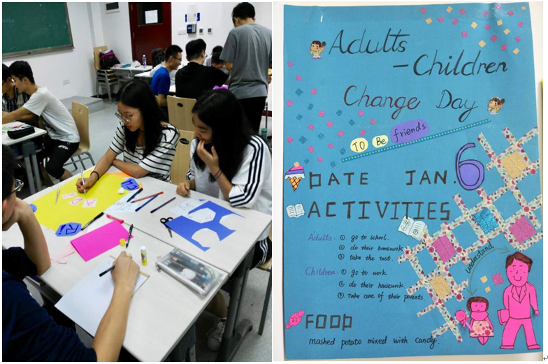 在活动中,我们队员之间必须用英语交换彼此的意见,用英语策划节日、设计海报,它不仅锻炼了我们的听说能力,同时还提升了我们的团队协作能力,在团队中尽管每人的绘画基础都不同,但大家各出己力,每张海报都有所有人的付出,尽管风格迥异,但都独具匠心,记得Diane口中最多的话语就是重复多少遍也表达不出她的欢喜的“You are so creative”。