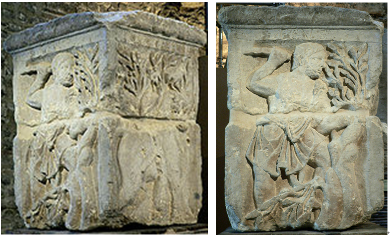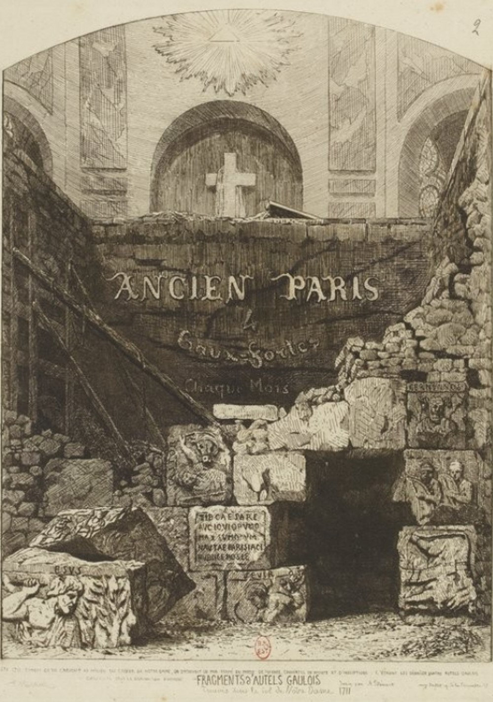 这就是建于公元1世纪的“航夫碑” (Pilier des Nautes)。是1711年巴黎圣母院祭坛重修时,在其地基内发现的。通过石碑上的浅浮雕和文字,我们知道,该碑建于古罗马第二任皇帝提比略时期(公元14年-37年),由高卢富庶的航夫商会出资,放置在祭坛上献给众神之主朱庇特的。碑上的浅浮雕均为高卢和罗马神祗,还有赞颂朱庇特和提比略的文字。该碑复原后高度为5米,由四部分组成,每块方石的四面均有浮雕,是法国最古老的雕刻建筑。