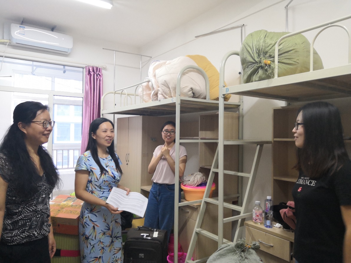 来到硕博研究生新生入住的西2、西6、西21和西23宿舍看望学生。