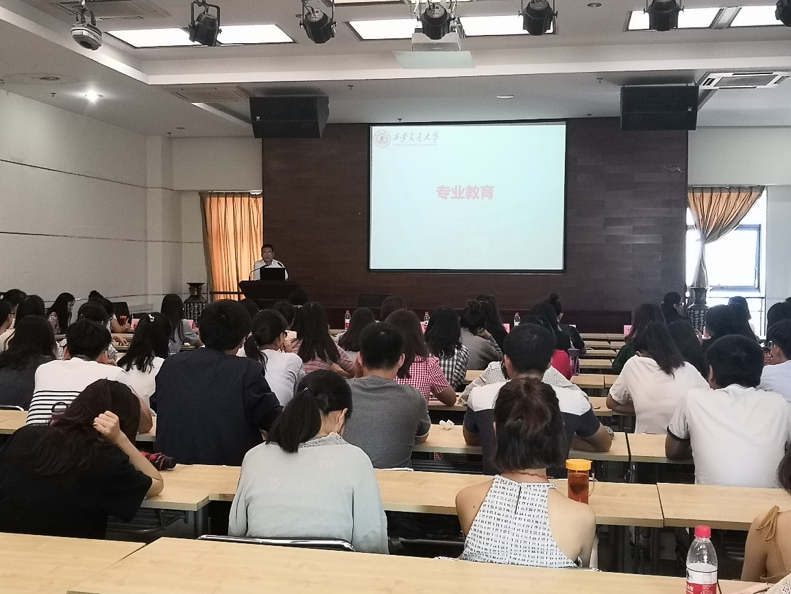 接着,院长助理聂文信对新生进行了专业教育。他提出:在现阶段,同学们应该对自己的未来有所思考,对未来的发展道路有所规划,确立明确的目标;其次,他强调同学们要和老师多交流沟通,要学会靠自己,不能过分依赖导师和学院的监督管理;最后,他也希望同学们能够享受在交大的研究生生活,让研究生生活过的充实而有意义。会上,研究生教学秘书杨卫宁和研究生事务员俞程成向同学们介绍了学籍管理的相关规定以及其他注意事项,帮助新同学更快的了解学校的各项政策和执行计划。