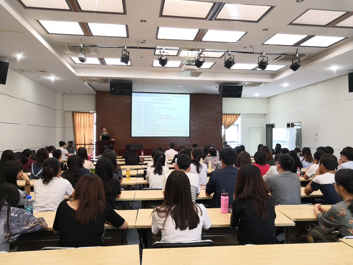 的发展历史、师资力量、专业方向、研究领域的分布、国际化水平和出国交流访学的机会等,让同学们对外院的科研情况有了基本的了解。同时程副院长还提出,在研究生期间,应该对自己的未来有所规划,不要虚度光阴,学习和做科研的时候要心无旁骛,也要努力拓宽自己的国际视野。她鼓励同学们要更加积极主动地与导师交流,掌握自己人生的主动权,相信付出一定会有回报。最后,程副院长希望每个研究生都能够成为更加优秀的交大学子,为外院“双一流学科”的建设而共同努力。