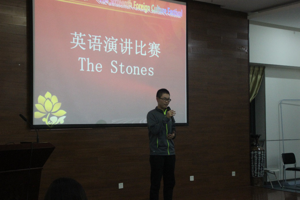 选手们以“The Stones”为题,各抒己见。赵雪竹同学联想到中国改革开放摸着石头过河的故事,张静文同学认为石头就像压力,如何调节自我值得我们思考。秦媛同学分享爷爷与玉石头的渊源,从中得出人生哲理。比赛紧张而激烈,观众也全神贯注。研一新生刘银屏同学称赞道:“每位选手都有自己的风采,都表现得非常好。令我印象深刻的是一个大二的学生,他的发音很标准,表达流畅自然,回答外教的问题,应对自如,落落大方。”比赛最后,外教根据选手们的表现进行点评。外教肯定每一位同学的表现,从选手身上看出学习外语的热情与活力。两位外教一致认为,演讲是否达到效果不在于内容篇幅的多少,而在于是否抒发己见,言之有理;并希望同学们再接再厉,在经历了不断的挑战后更加优秀!