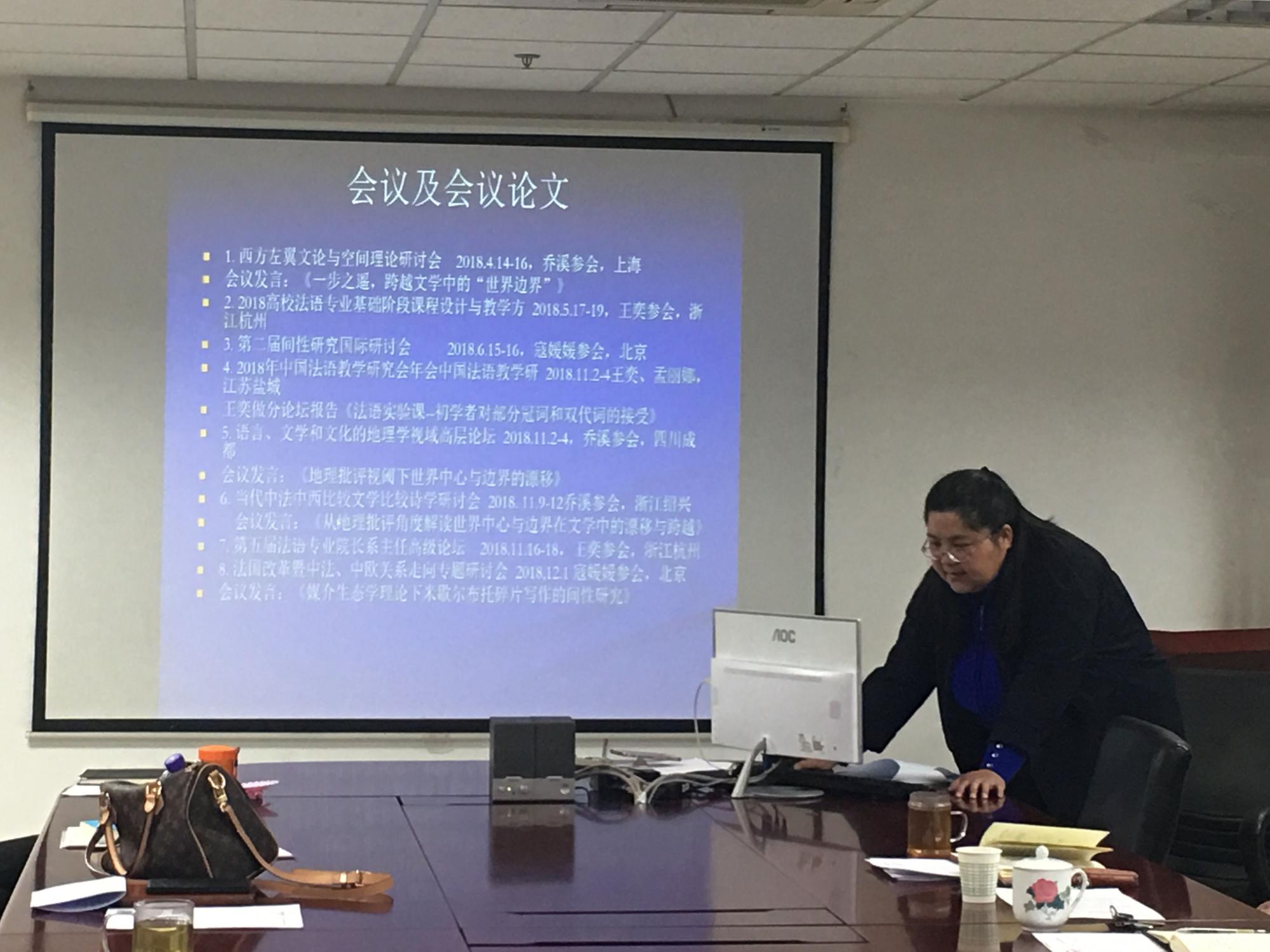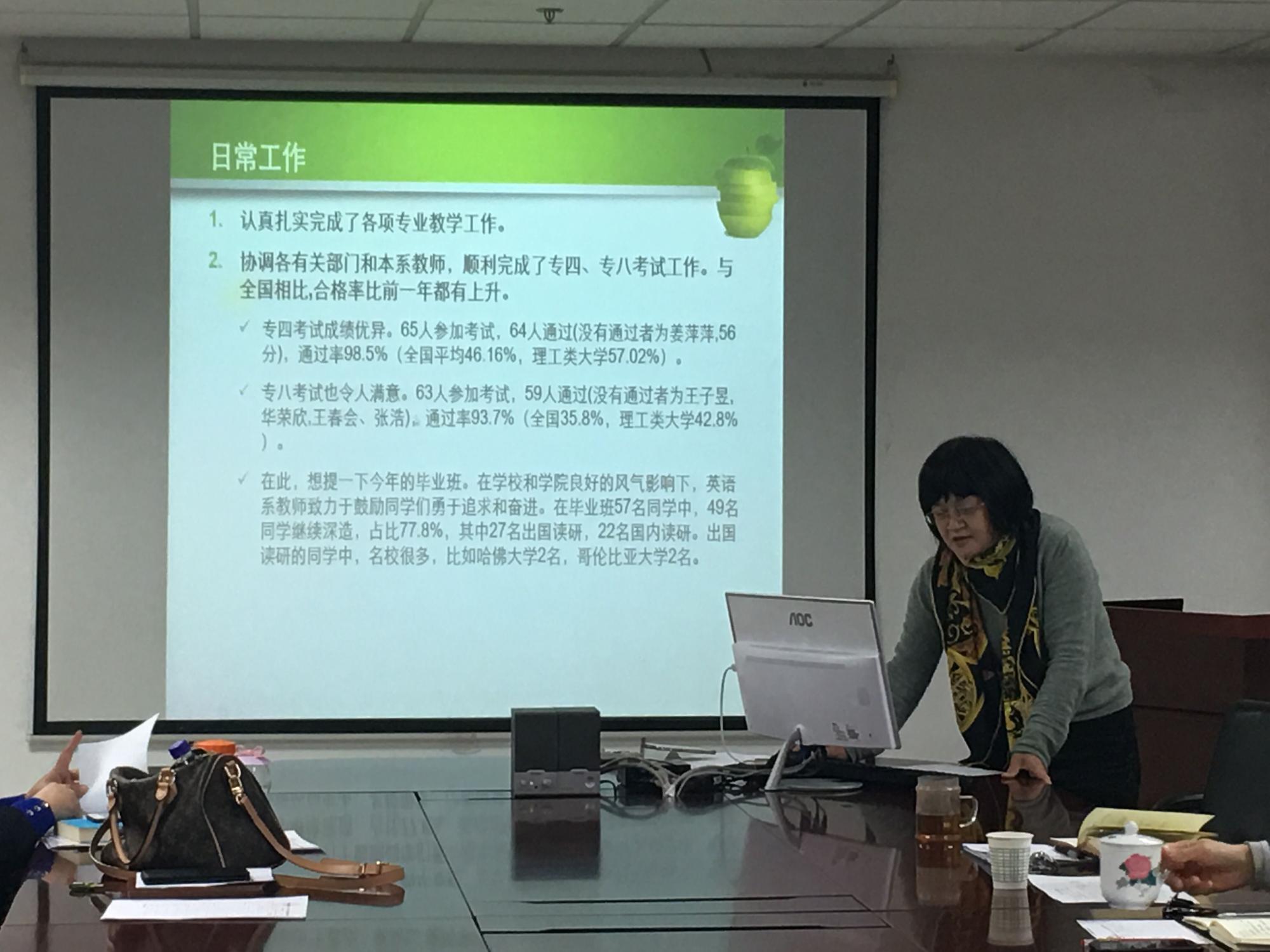 会上,学院10位系中心主任逐一介绍各系中心2018年度开展工作、取得成绩、存在问题及2019年工作设想,通过介绍常规工作、亮点工作,对2018年教学、科研等各项工作进行总结,同时规划2019年增量工作。“2018年实施的研究生英语教学改革得到了学生的高度评价”研究生英语教学中心主任王华介绍2018年工作时提到。“2018年日语系科研工作、日语慕课都取得了突破性进展,开设日英双语专业”,日语系主任张文丽如是说。除了教学科研工作,英语系主任杜丽霞介绍了英语系2018年首次举办毕业生联欢会,为毕业生送上全系教师签名的贺卡,让学生离校前感受到学院人文关怀,增强学生归属感的经验。“2018年MTI教育中心为学生拓展了3个实习基地,2019年将完善各项管理制度,扎实推进学生实践”,MTI教育中心主任李莹总结并规划工作时谈到。法语系主任王奕介绍法语系2018年开展工作时,谈到了宣传尤其是社会媒体宣传对专业发展的重要意义和有效措施。