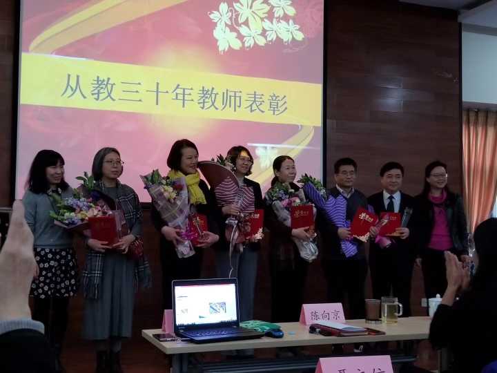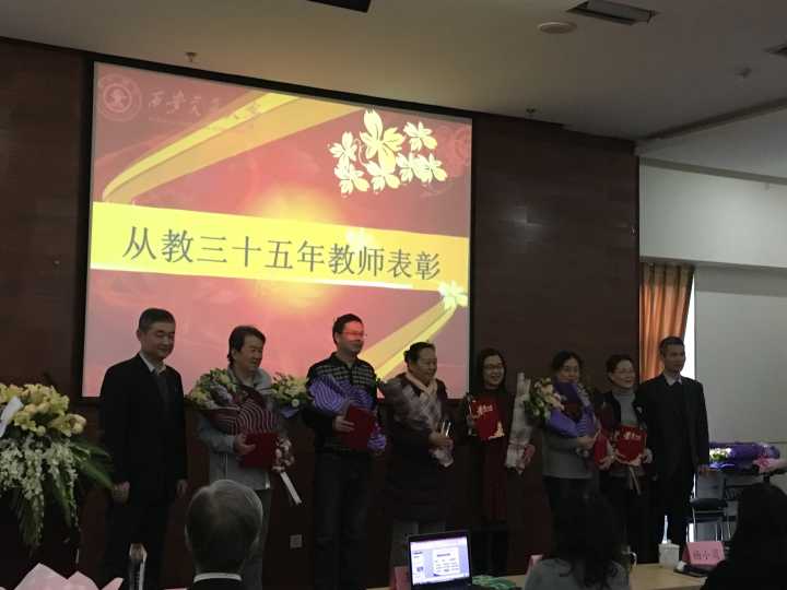 副院长程冰主持,对从教40年的白永权、赵刚两位教授颁发荣誉证书。同时,也对从教30年以上的教师进行表彰。从院领导手中接过奖杯、证书和鲜花,受表彰的老师个个脸上洋溢着自豪与喜悦。