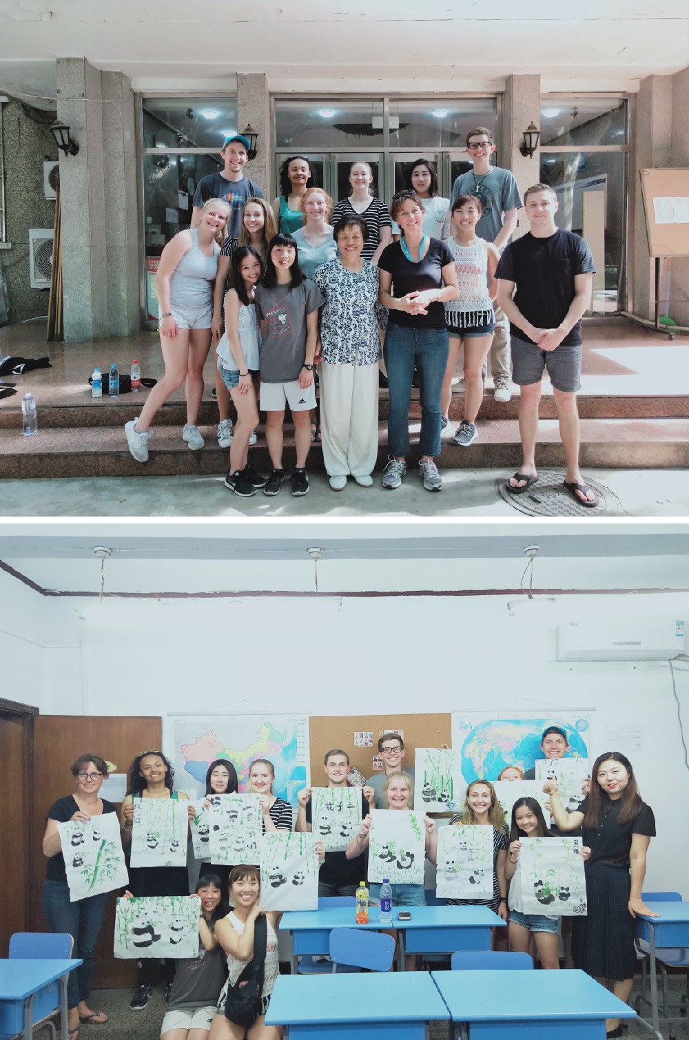 安雅教授一行人在西安交大的课程安排具有浓郁的中国文化特色,包括普通话、太极拳、书法、绘画、中国文学赏读等。老师从拼音开始,讲述传统文化精髓,演绎水墨丹青魅力。口译志愿者翻译太极拳、中国画、书法课等内容,课堂生动活泼,帮助科罗拉多大学师生,深入解读文学创作背景,认识当代中国。