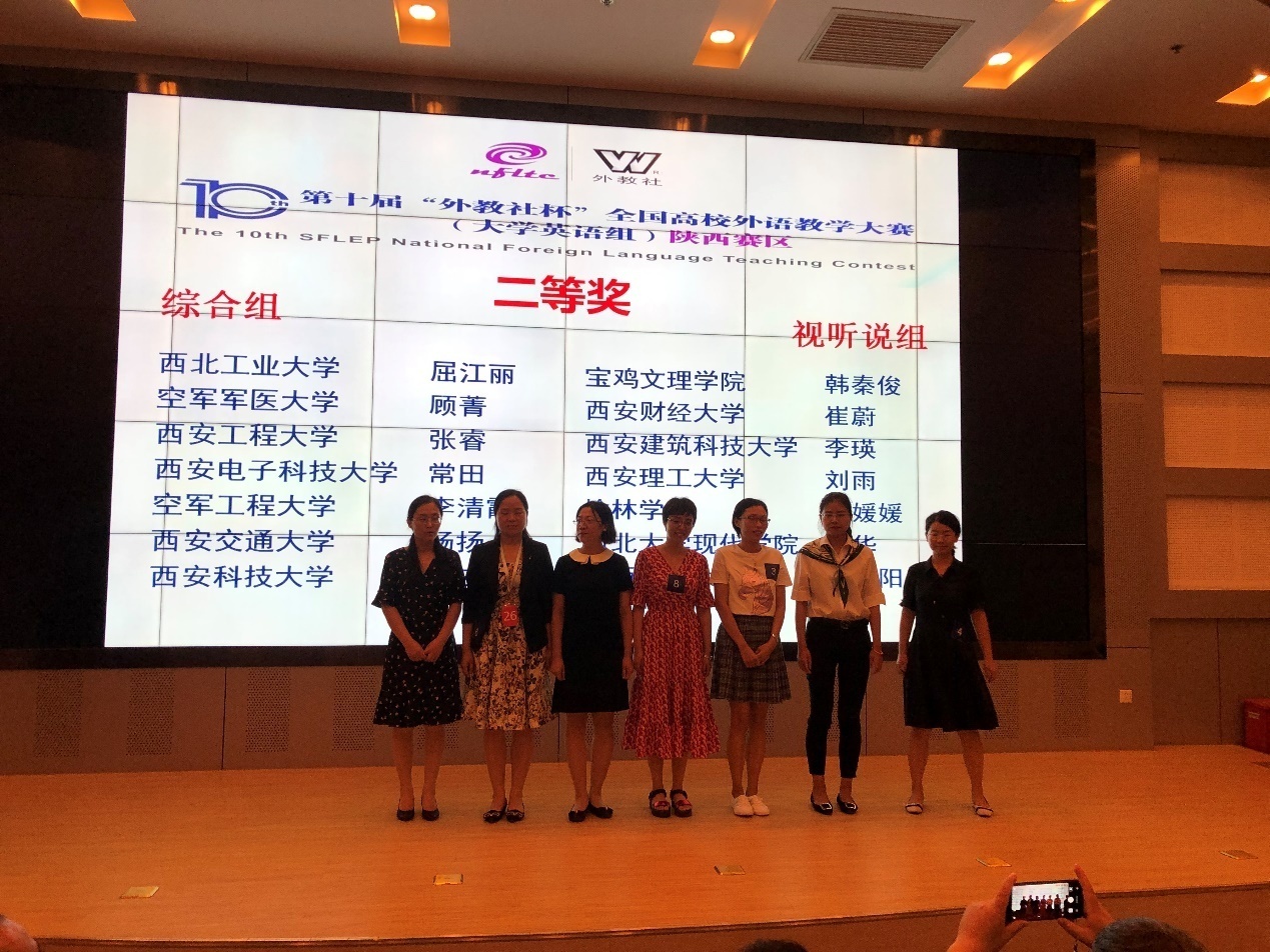 大学英语教学中心教师钱希获得视听说组一等奖,杨扬获得综合组二等奖。