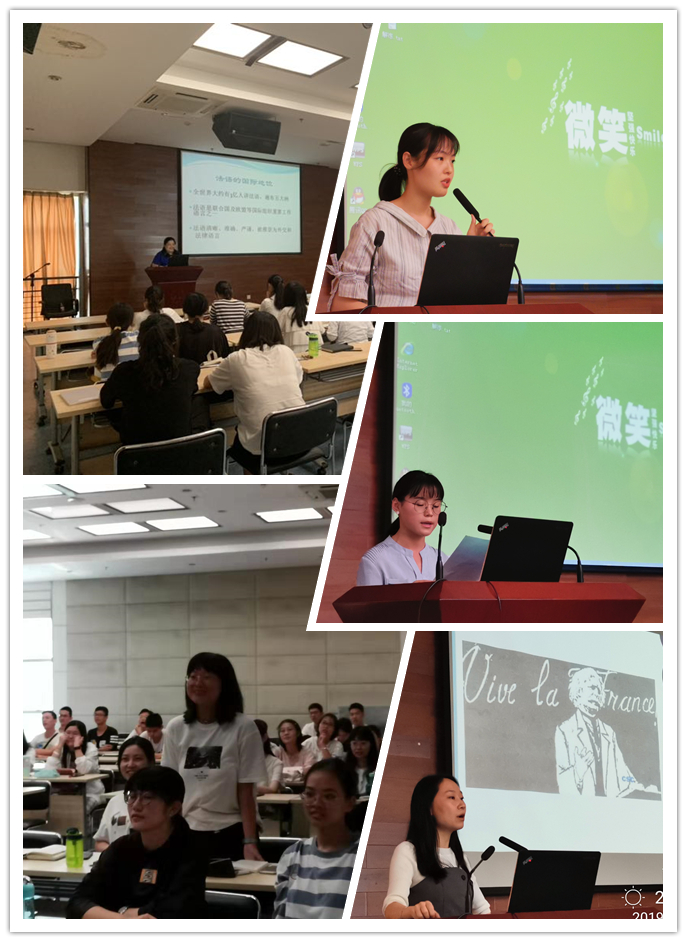 9月3日下午,法语系和日语系先后在外文楼B1001举行专业入学教育。法语系大四学生唐满和刘方圆讲述个人学习法语的感受和经验,系主任王奕老师介绍了法语在国际上的地位以及交大法语系的概况,优秀教师代表乔溪老师进行法语知识趣味问答,现场非常活跃。
